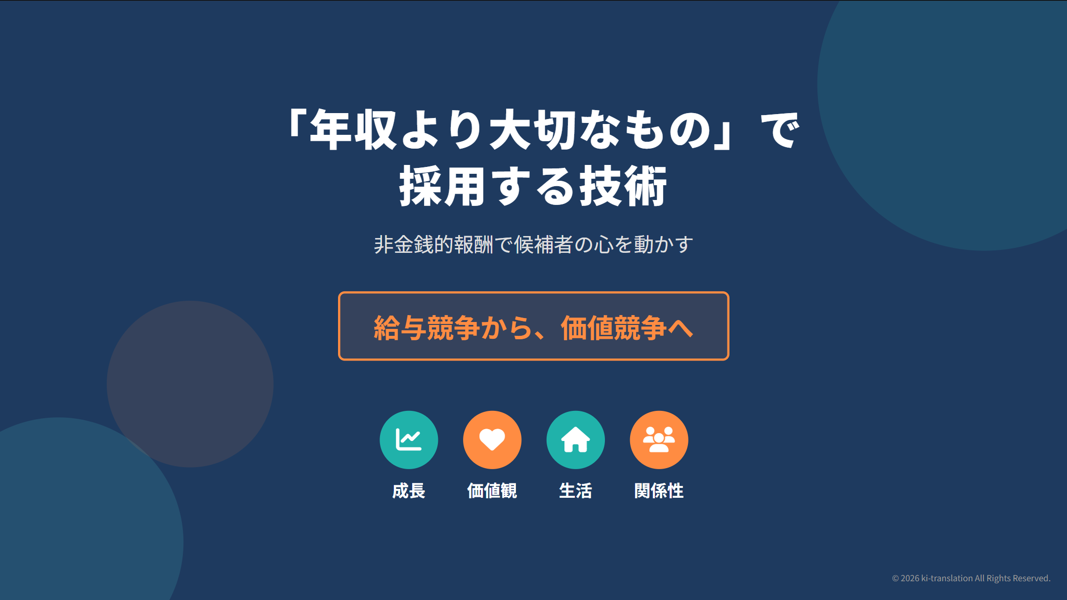 採用競合と給与で戦い続けるのは消耗戦です。自社が提供できる非金銭的な価値を言語化し、適切なコンテンツに変換できれば、まったく別の土俵で候補者の心を動かすことができます。